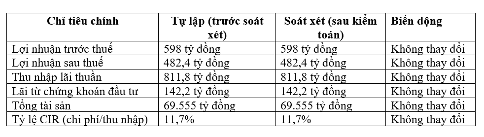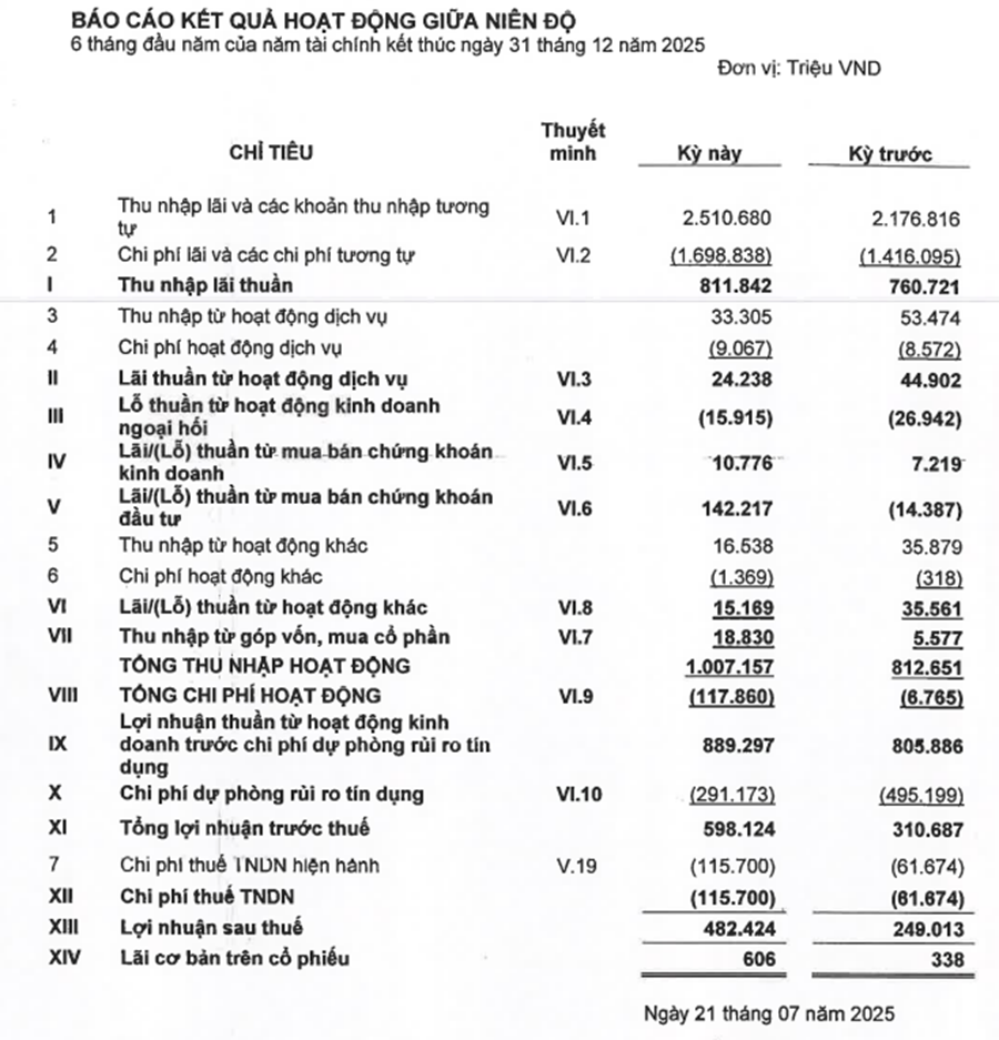 Trích số liệu kết quả kinh doanh 30/6/2025 trên báo cáo tài chính soát xét