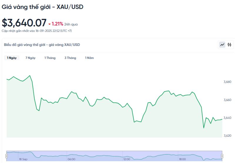 Giá vàng thế giới hôm nay 19/09/2025 và biểu đồ biến động giá vàng thế giới 24h qua