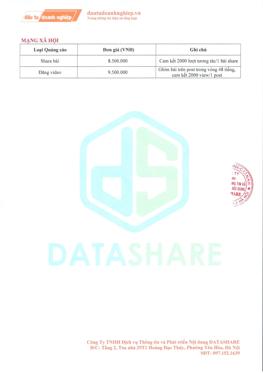 CÔNG TY TNHH DỊCH VỤ THÔNG TIN VÀ PHÁT TRIỂN NỘI DUNG DATASHARE