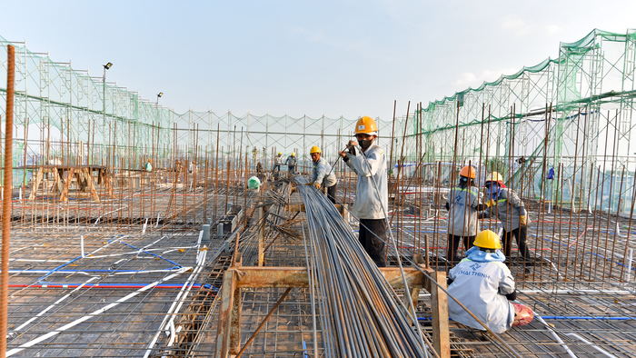 Khởi công vào tháng 12/2023, tới đầu tháng 7/2024, dự án đã hoàn thành 100% phần móng, sàn hầm. Hiện nay, cuối tháng 10, tiến độ thi công tại Phú Đông SkyOne vẫn được đảm bảo theo đúng kế hoạch. Hiện, cột vách tầng 4 đến tầng 5 đã thi công đạt 70%, hạng mục dầm sàn khu vực hồ bơi cũng đạt 70% khối lượng.