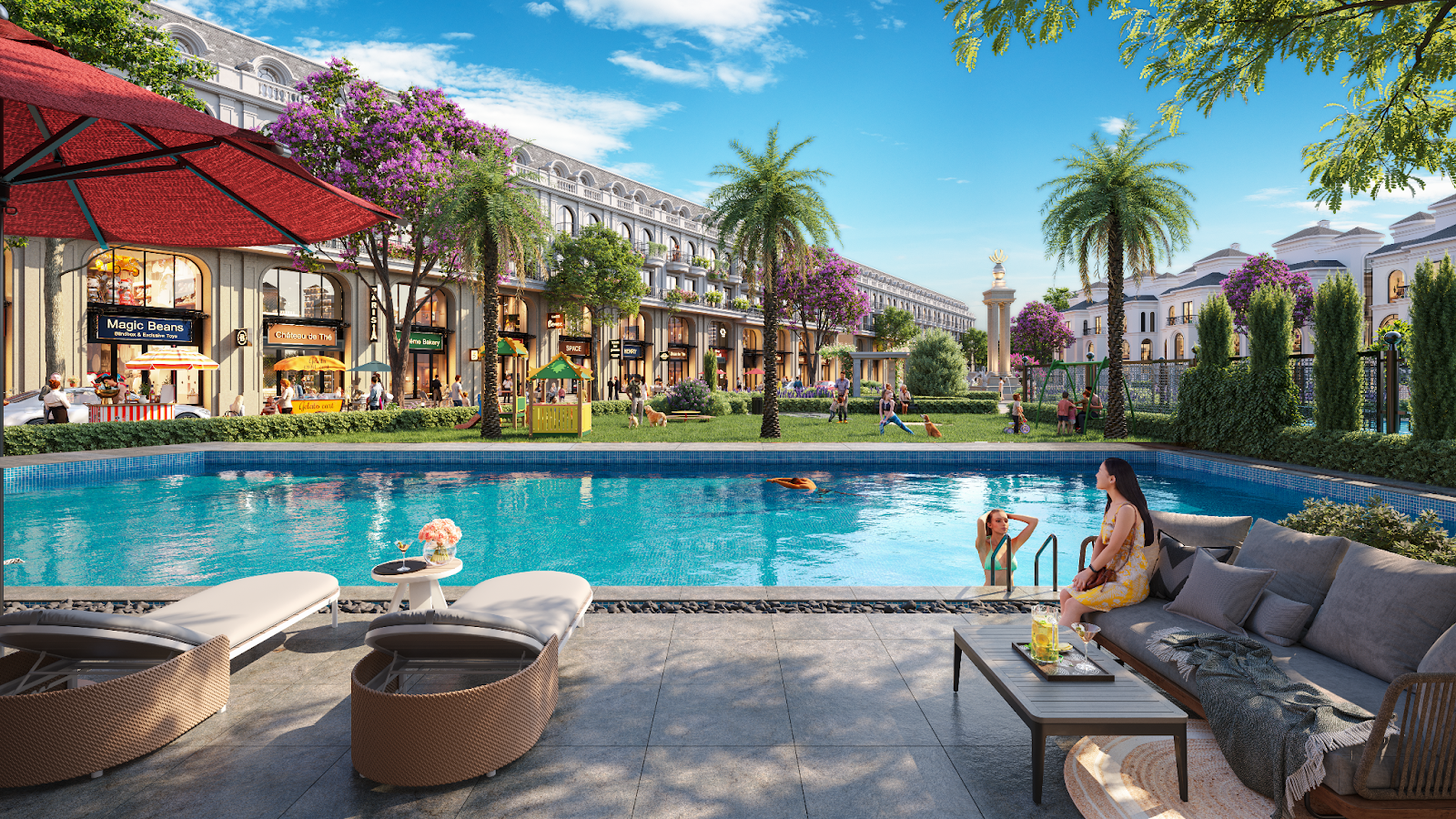 Song song với đó, dự án tích hợp loạt tiện ích mang tính nghỉ dưỡng như hồ bơi chuẩn resort, sân pickleball, công viên Central Park,... Những tiện ích này tạo ra môi trường thư giãn tại chỗ, phù hợp với xu hướng sống cân bằng trong các đô thị công nghiệp.