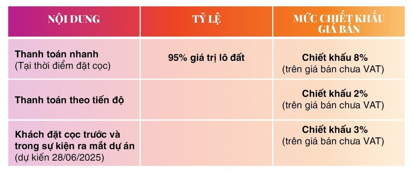 Tham gia sự kiện, khách hàng không chỉ được trực tiếp tham quan thực tế giai đoạn 1 đã hoàn thiện của dự án mà còn được tư vấn chuyên sâu để lựa chọn những lô đất vị trí đẹp, chính sách đầu tư hiệu quả. Đặc biệt, trong ngày mở bán, khách hàng sẽ nhận ngay ưu đãi độc quyền với mức chiết khấu lên đến 11%. Ngoài ra, chính sách hỗ trợ tài chính cũng rất linh hoạt: Hỗ trợ vay tới 65% giá trị lô đất (đã gồm VAT), với thời hạn vay tối đa lên đến 35 năm, giúp nhà đầu tư dễ dàng hiện thực hóa kế hoạch sở hữu bất động sản ven biển.