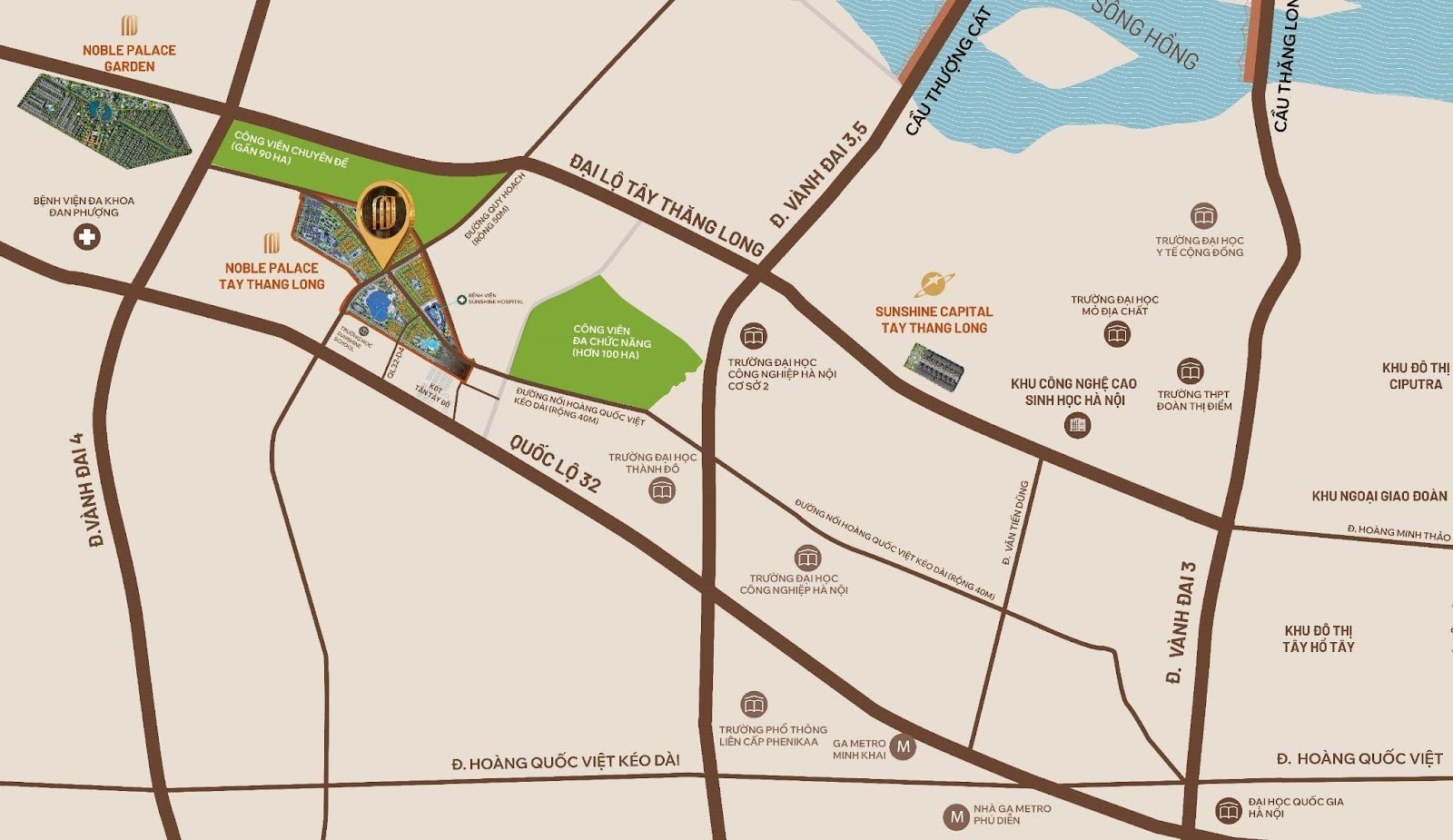 Khi hạ tầng hoàn thiện, từ Noble Palace Tay Thang Long tới Hồ Tây chưa đầy 15 phút, kết nối thuận tiện cùng trục Nhật Tân - Nội Bài để hướng ra cửa ngõ quốc tế Nội Bài. Đồng thời tăng khả năng tiếp cận hàng loạt tiện ích, dịch vụ hàng đầu của Tây Hà Nội cũng chỉ trong 15 - 20 phút như: Sân vận động Mỹ Đình, Bệnh viện 19-8, Đại học Quốc gia Hà Nội, Trung tâm Hội nghị quốc gia…