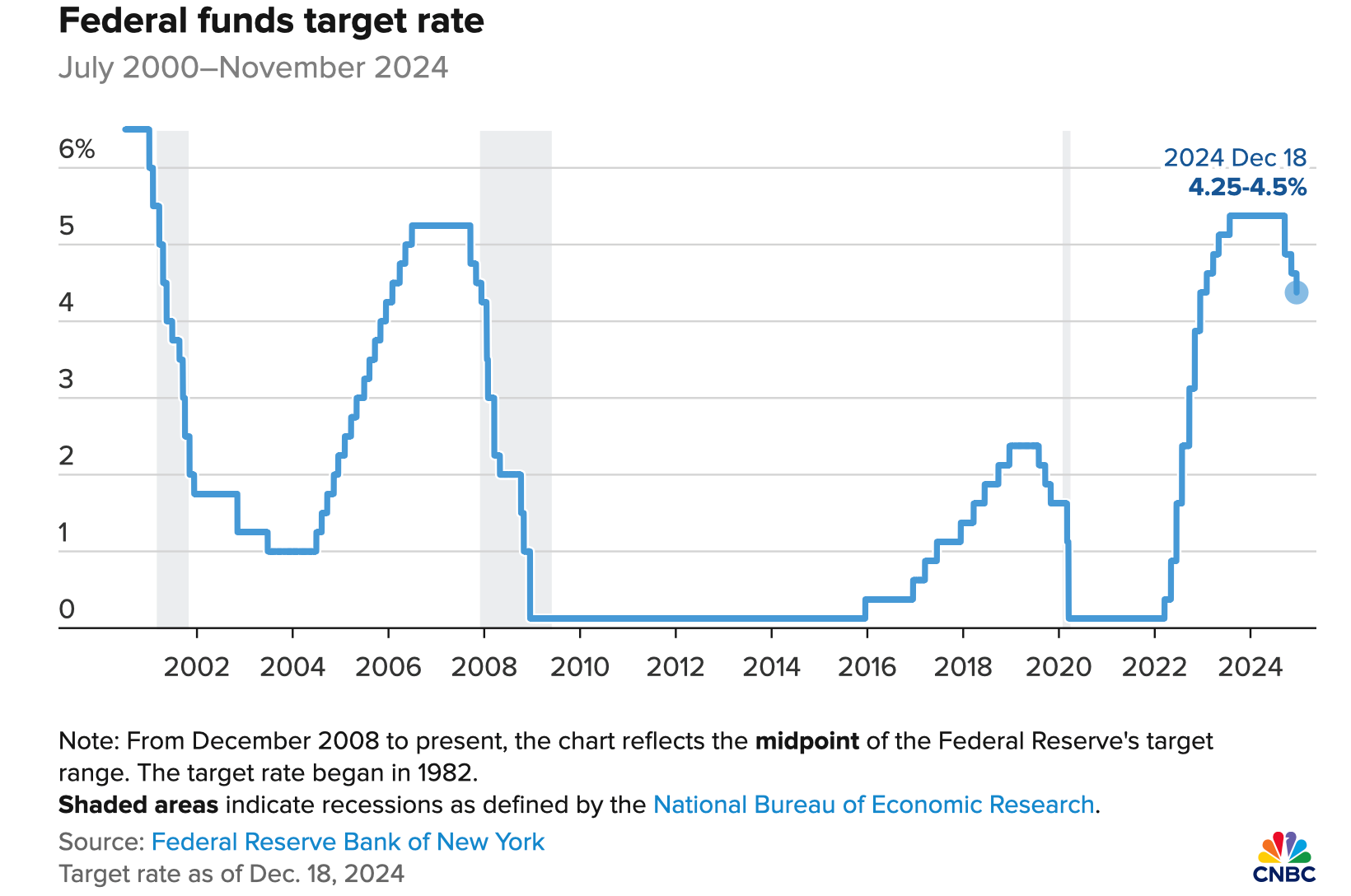 Ngày 18/12, sau cuộc họp cuối cùng của năm 2024, Ngân hàng Dự trữ Liên bang Mỹ (FED) đã hạ lãi suất lần giảm thứ ba liên tiếp, kèm theo tín hiệu thận trọng về lộ trình cắt giảm lãi suất trong tương lai.