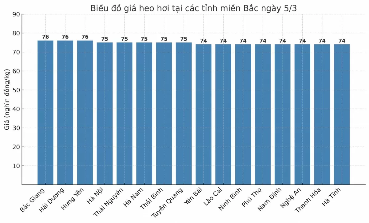 Biểu đồ giá heo hơi tại các tỉnh miền Bắc ngày 5/3.