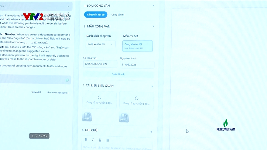 Trong bối cảnh đó, số phát sóng của “Dòng chảy số” với chủ đề “Hành chính số” mang đến một lát cắt rõ nét về hành trình chuyển đổi từ văn phòng truyền thống sang văn phòng thông minh tại PVN – nơi công nghệ, đặc biệt là trí tuệ nhân tạo, đang trở thành “cây bút thông minh” đồng hành cùng cán bộ trong xử lý công việc và văn bản. Chương trình “Dòng chảy số” phát sóng vào khoảng 17h30 thứ Hai, thứ Ba và thứ Tư hàng tuần trên kênh VTV2. Chương trình có sự tham gia đồng hành của Tập đoàn Công nghiệp – Năng lượng Quốc gia Việt Nam (PVN).