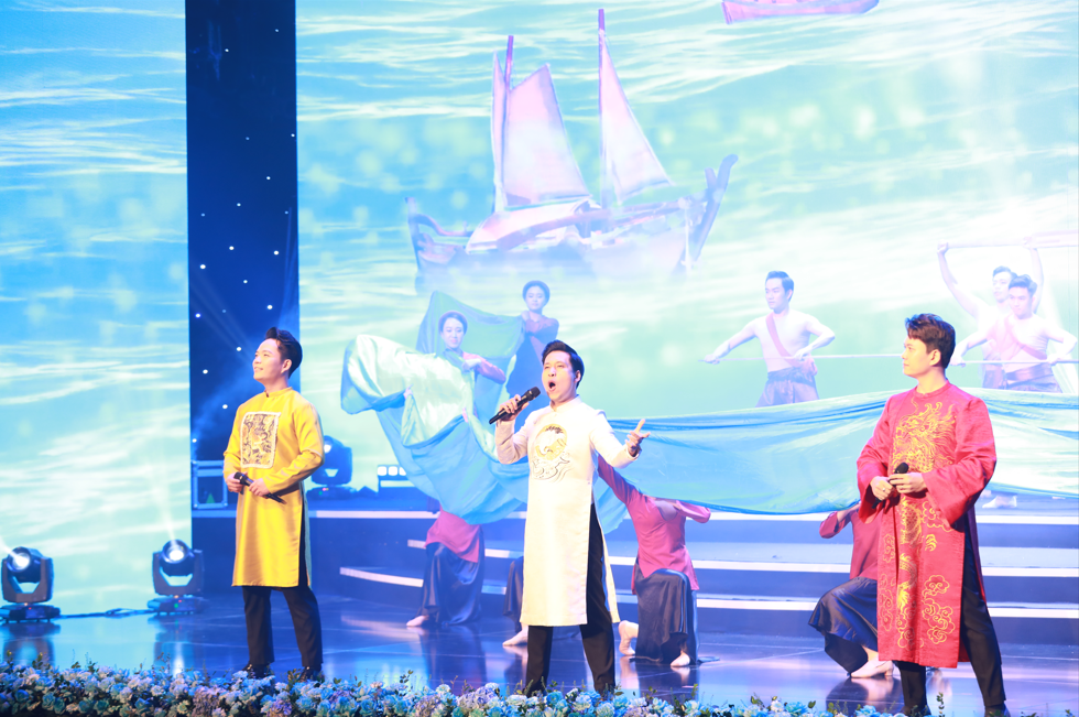 Một trong những điểm nhấn đặc biệt là sự xuất hiện của các tiết mục mang đậm chất văn hóa dân gian. Diễn viên khoác áo bà ba, sử dụng lưới cá và đạo cụ truyền thống đã tạo nên những khung hình rất đời, rất thật. Những chuyển động mềm mại của diễn viên minh họa hài hòa với giọng ca đầy cảm xúc của nghệ sĩ biểu diễn, khiến sân khấu như được tiếp thêm hơi thở của đời sống ngư dân. Người xem dường như cảm nhận được nhịp sống mặn mòi, bền bỉ của vùng biển quê hương.