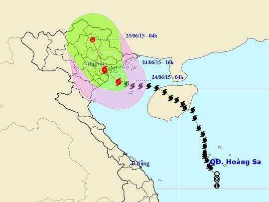 Hồi 4 giờ ngày 1/7, vị trí tâm bão số 1 ở cách quần đảo Hoàng Sa khoảng 360km về phía Đông Đông Bắc. Sức gió mạnh nhất vùng gần tâm bão mạnh cấp 10 (89 - 102km/giờ), giật cấp 12. Bán kính gió mạnh cấp 6, giật cấp 8 khoảng 150km tính từ tâm bão.