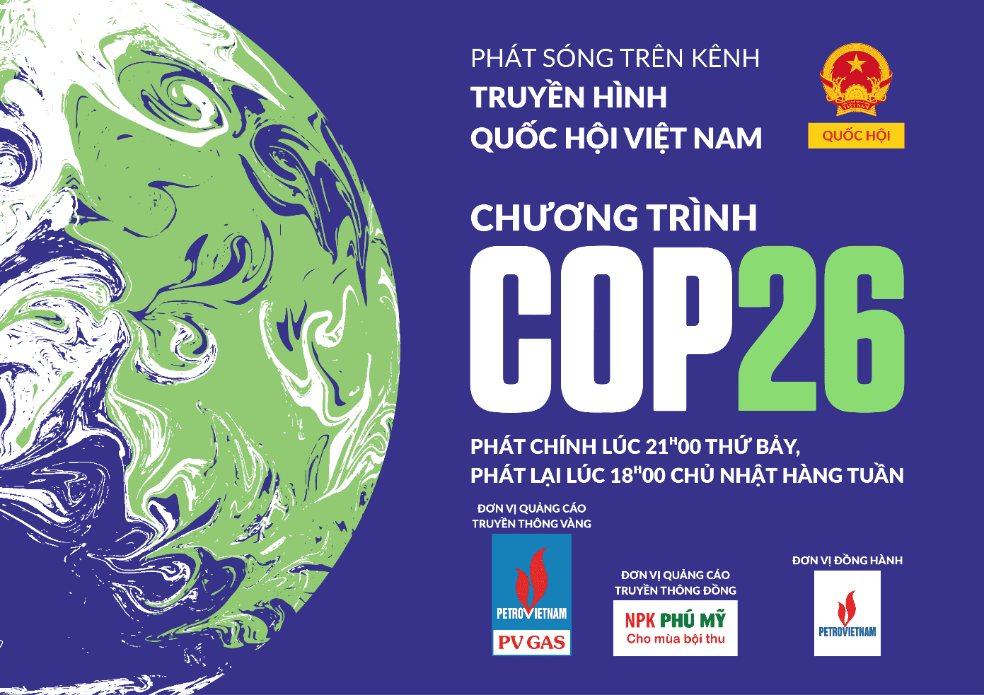 Để phản ánh tiến trình quan trọng này, với sự hỗ trợ, đồng hành của Tổng Công ty Khí Việt Nam – CTCP, Tập đoàn Dầu khí Việt Nam, Tổng Công ty Phân bón và Hóa chất Dầu khí, Truyền hình Quốc hội Việt Nam phối hợp với các đơn vị liên quan sản xuất và phát sóng chương trình “COP26” phát chính vào 21h00 thứ 7 và phát lại vào 18h00 chủ nhật hàng tuần trên kênh sóng của Truyền hình Quốc hội Việt Nam.