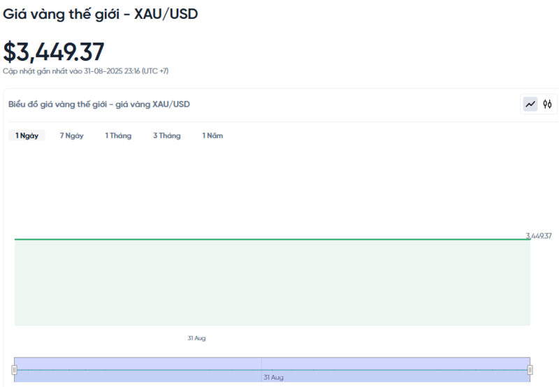 Giá vàng thế giới hôm nay 01/09/2025 và biểu đồ biến động giá vàng thế giới 24h qua
