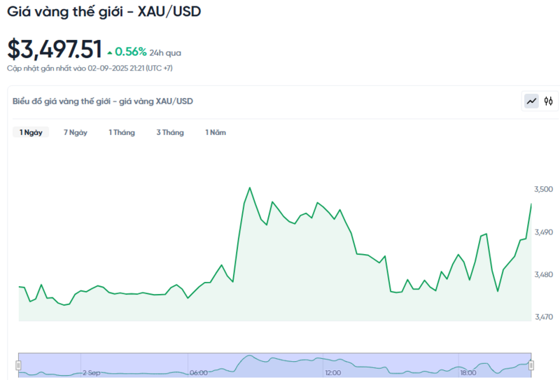 Giá vàng thế giới hôm nay 03/09/2025 và biểu đồ biến động giá vàng thế giới 24h qua
