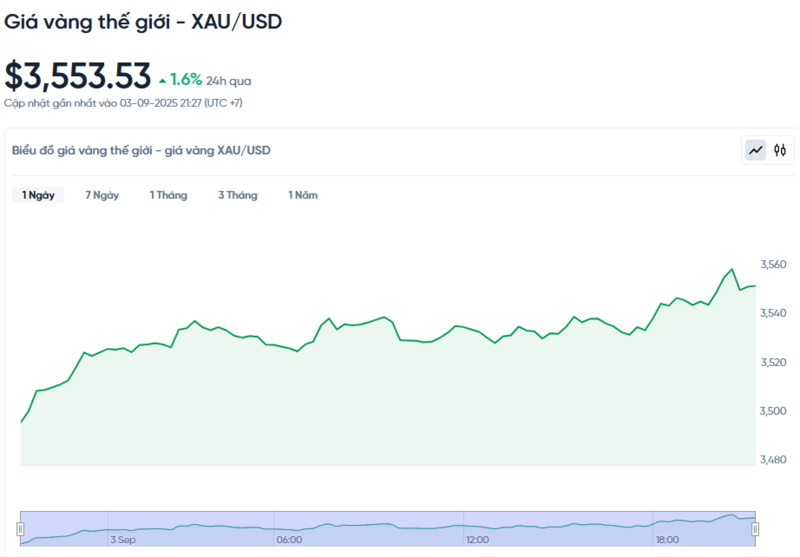 Giá vàng thế giới hôm nay 04/09/2025 và biểu đồ biến động giá vàng thế giới 24h qua