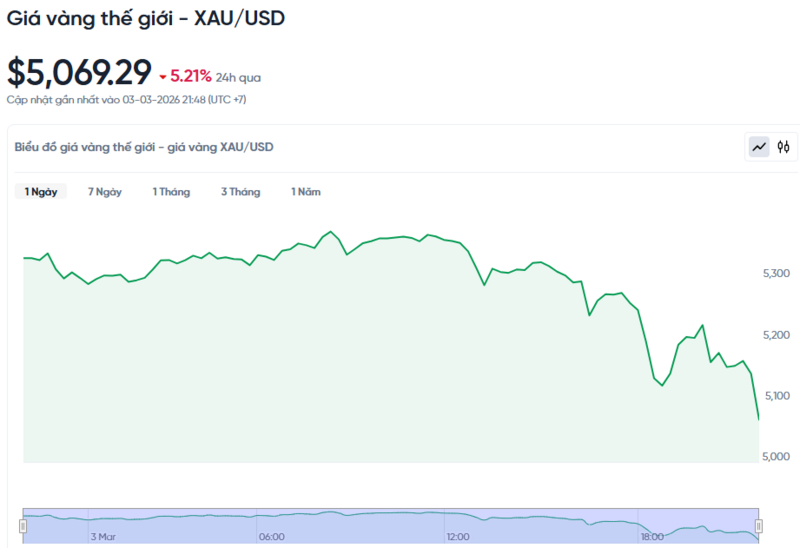 Giá vàng thế giới hôm nay 04/03/2026 và biểu đồ biến động giá vàng thế giới 24h qua