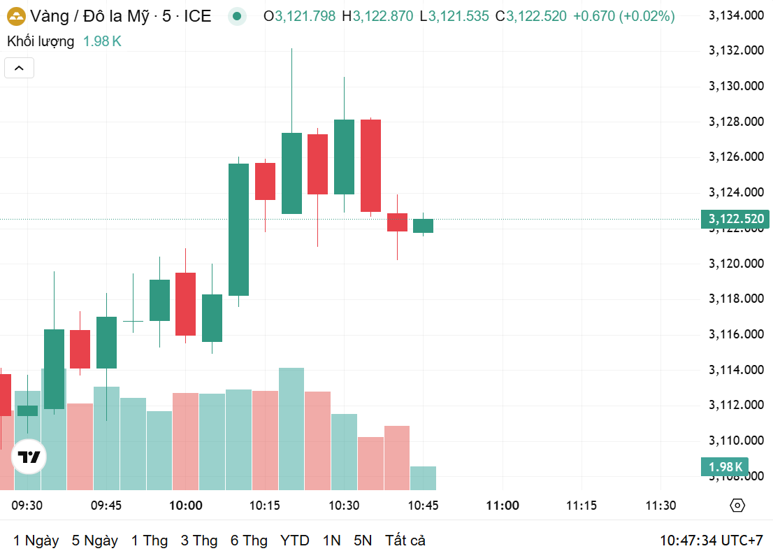 Giá vàng trong nước biến động theo xu hướng của thị trường thế giới. Thời điểm 10h45 sáng nay (ngày 10/4, theo giờ Việt Nam), theo Kitco.com, giá vàng thế giới giao dịch ở mức 3.122,52 USD/ounce, tăng mạnh 142 USD/ounce so với phiên trước.