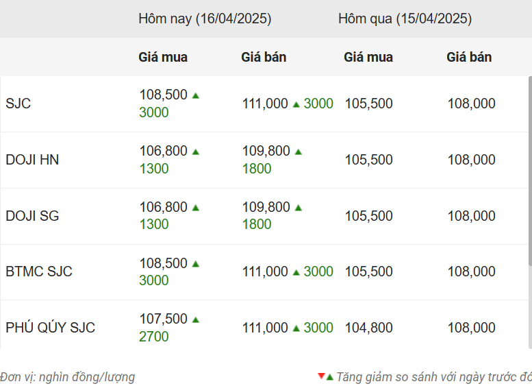 Phiên sáng ngày 16/4, giá vàng trong nước bất ngờ tăng phi mã, với giá vàng miếng SJC lẫn vàng nhẫn ghi nhận đà tăng 3 - 5 triệu đồng/lượng, chính thức cán mốc 111 triệu đồng/lượng - mức cao chưa từng có trong lịch sử.