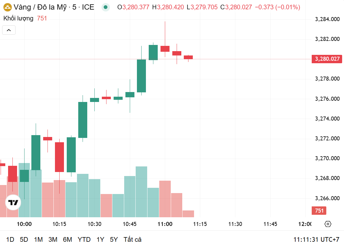 Diễn biến tăng của giá vàng trong nước ảnh hưởng theo xu hướng của vàng thế giới. Thời điểm 10h45 sáng nay (ngày 16/4, theo giờ Việt Nam), theo Kitco.com, giá vàng thế giới giao dịch ở mức 3.280 USD/ounce, tăng mạnh 58,76 USD/ounce so với phiên trước.