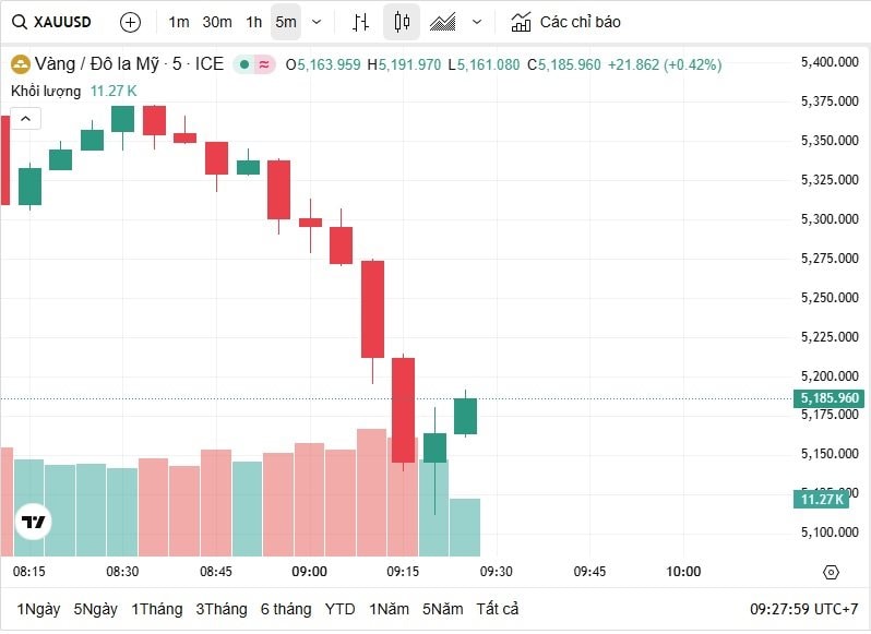 Thời điểm 9h30 theo giờ Việt Nam, giá vàng thế giới giao ngay ở mức 5.179 USD/ounce, giảm 346 USD trong 24 giờ qua. Hiện, giá vàng thế giới quy đổi sang tiền Việt Nam đồng có giá là 163,4 triệu đồng/lượng.