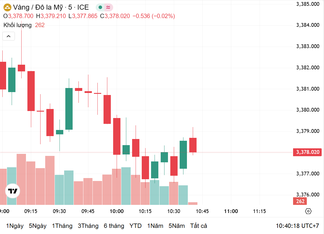 Thời điểm 10h30' hôm nay (ngày 7/8, giờ Việt Nam), theo Kitco.com, giá vàng thế giới tăng 13 USD, hiện đứng ở mức 3.380 USD/ounce. Quy đổi theo tỷ giá Vietcombank, mức giá này tương đương khoảng 107,5 triệu đồng/lượng.