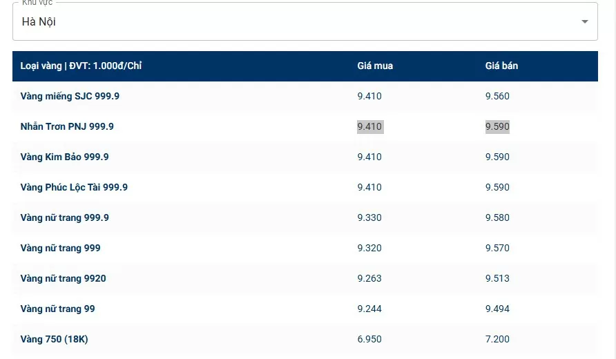 Công ty TNHH MTV Vàng Bạc Đá quý Sài Gòn cũng điều chỉnh giá vàng nhẫn lên mức 94 - 95,5 triệu đồng/lượng mua vào - bán ra.