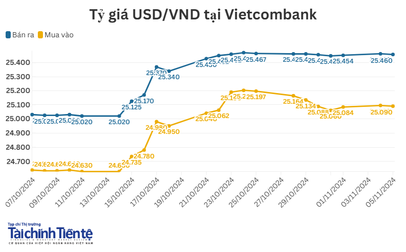 Tỷ giá trung tâm ngày 5/11 giảm 5 đồng