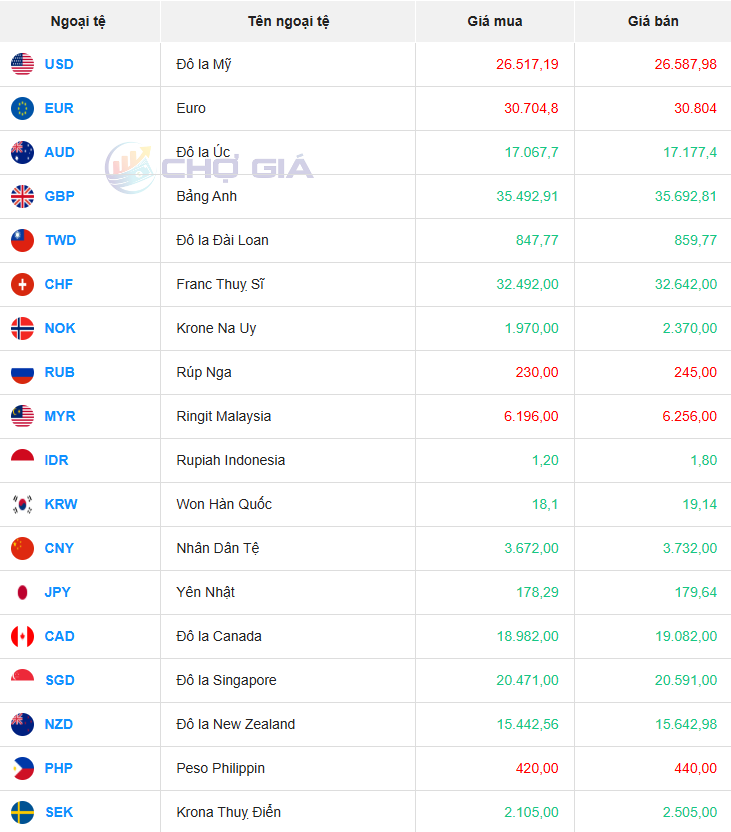 Cụ thể, tại ngân hàng Vietcombank, tỷ giá USD là 26.080 - 26.470 đồng/USD, tăng 20 đồng ở cả 2 chiều, so với phiên giao dịch ngày hôm qua.