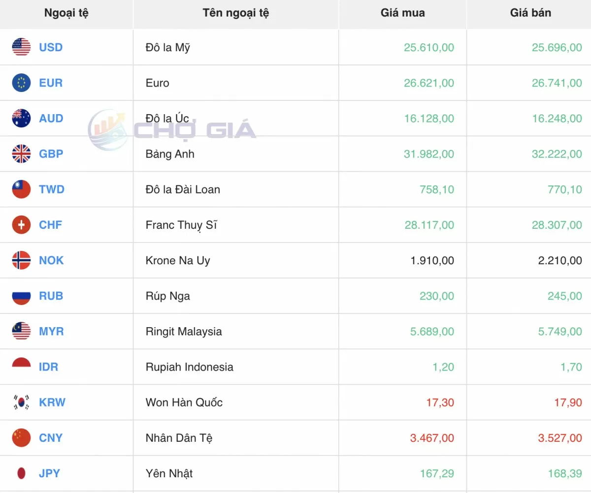 Ngoại tệ | Mua | Bán | ||