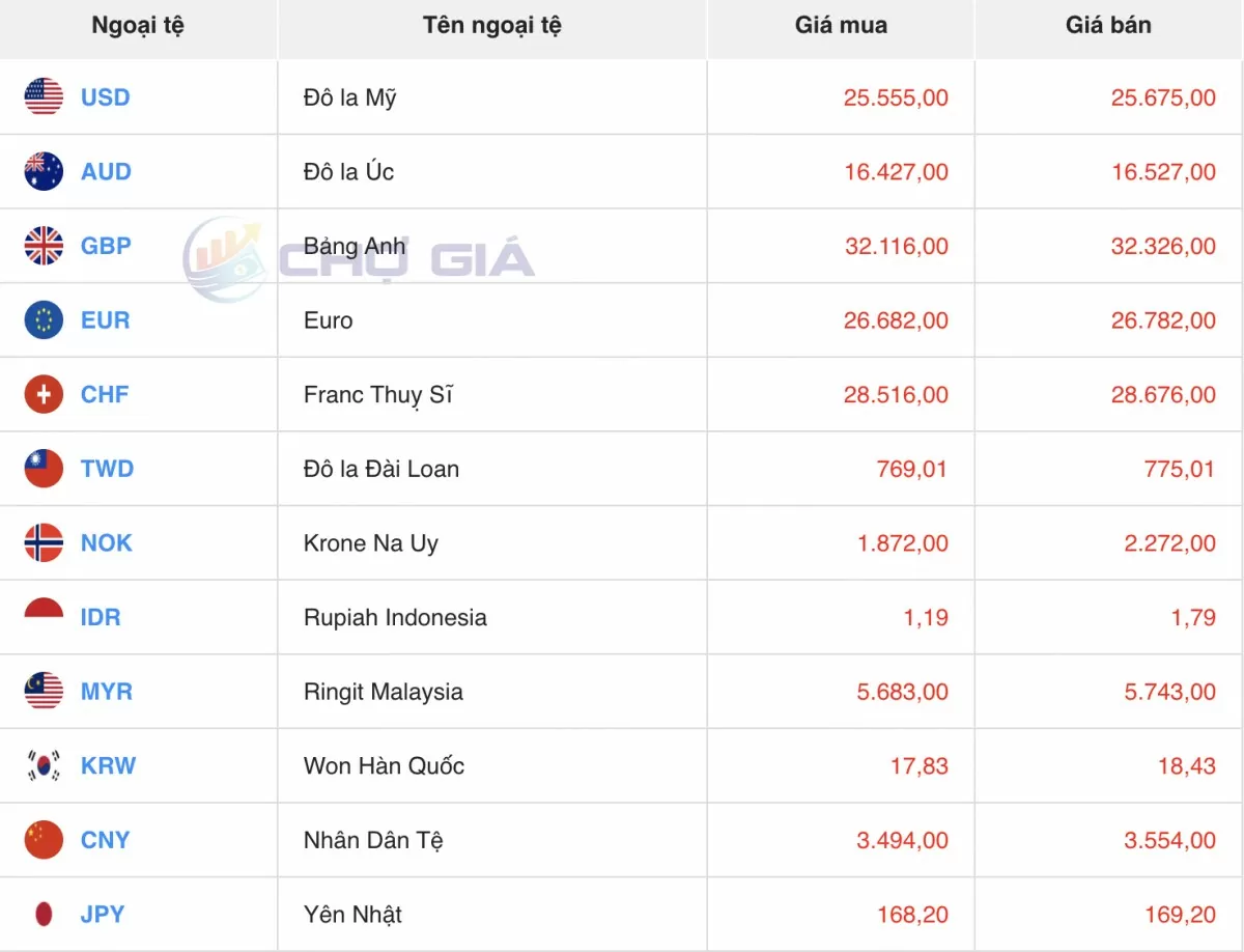 | Franc Thụy Sỹ | CHF | 28,291 | 28,319 | 29,144 |