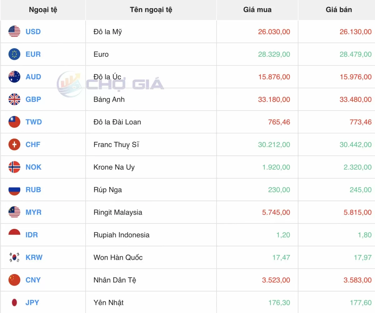 Ngoại tệ | Mua | Bán | ||