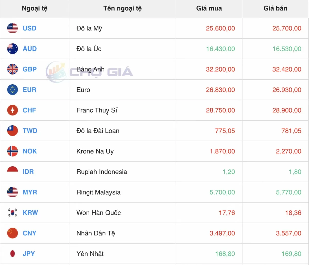 Ngân hàng  | Mua  | Bán  | Mua  | Bán  |
